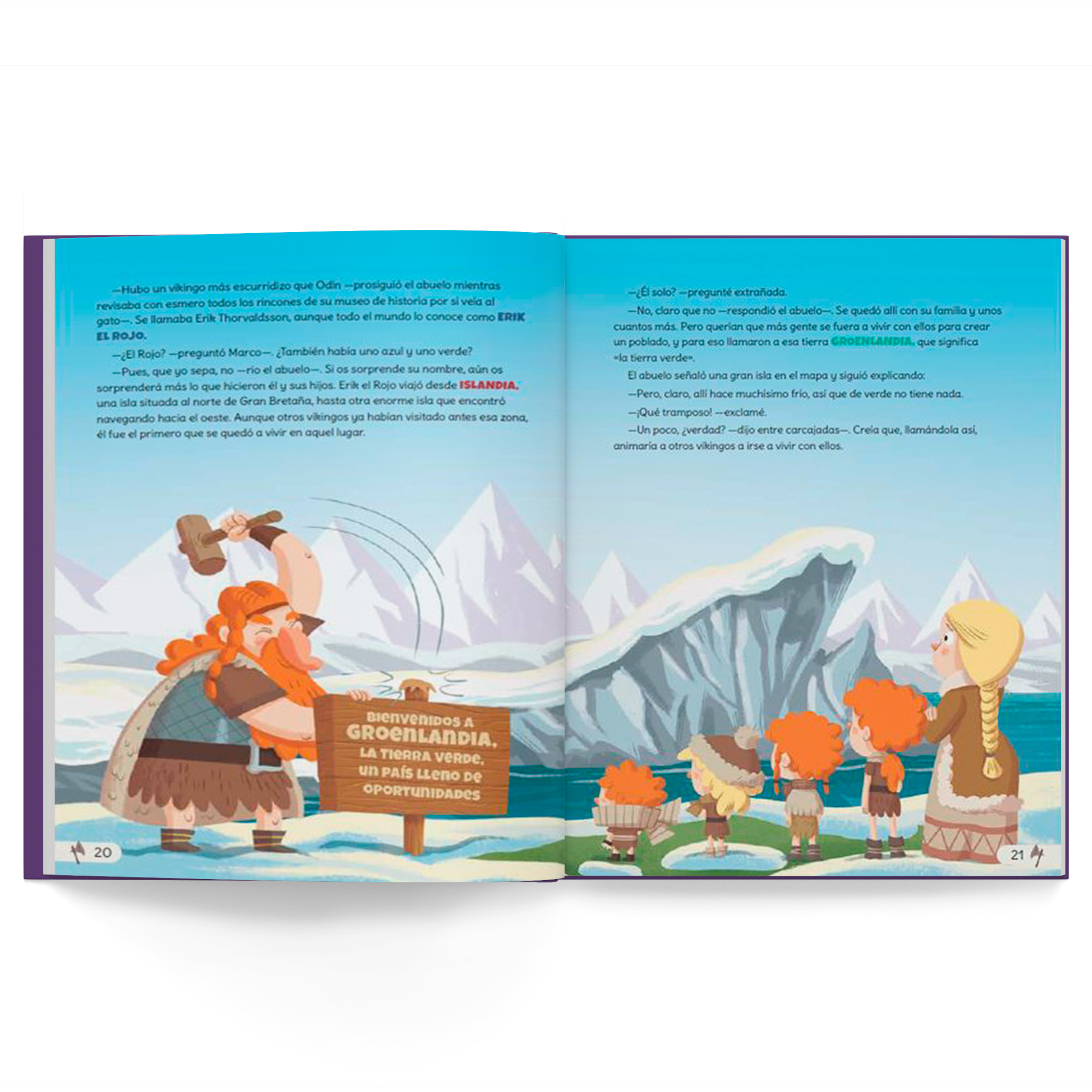 Desde que el abuelo compartió con ellos su pasión por el pasado, Carmen y Marco se han vuelto unos auténticos locos por la historia. En esta ocasión, nuestros protagonistas se trasladan a la gélida Escandinavia para conocer a los vikingos. Desde el siglo VIII hasta varios siglos después, estos pueblos de temibles navegantes atacaron y saquearon sin piedad infinidad de aldeas y ciudades de toda Europa, incluidas la península ibérica, Francia e Italia. ¡Eran el terror de los mares!
