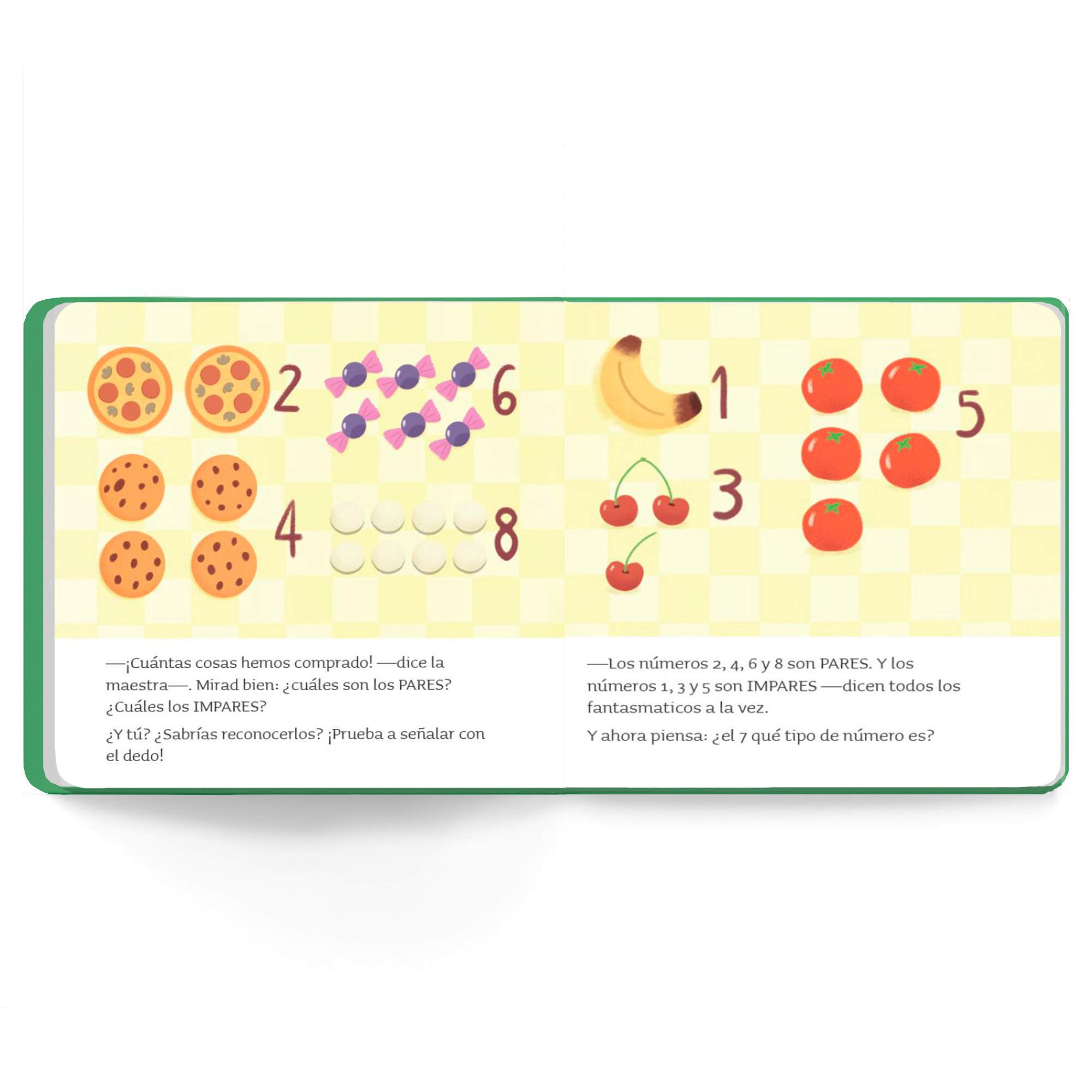Una nueva aventura de los Fantasmáticos, los únicos cuentos con los que más pequeños, además de divertirse, aprenden matemáticas sin miedo. En esta ocasión, la maestra ha llevado a los fantasmáticos al mercado. Allí, comprarán pizzas, caramelos y fruta mientras aprenden a distinguir entre los números pares y los impares. ¡Acompáñalos y aprende con ellos!